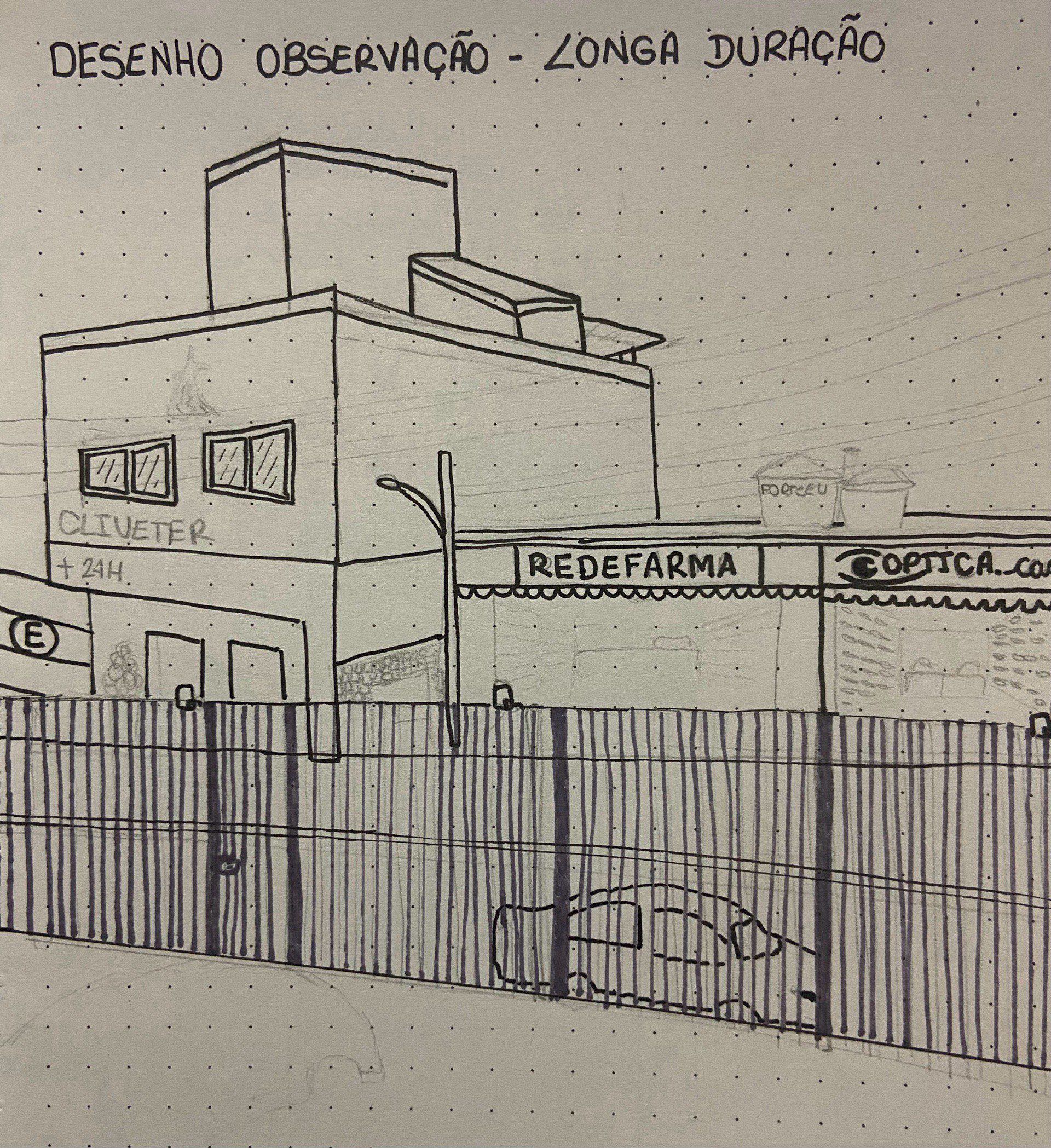 Quando fiz o desenho estava fazendo também um trabalho de urbanismo sobre a rua que eu moro, o que foi ótimo, pois assim observei com mais detalhes algumas coisas que não tinha reparado antes.